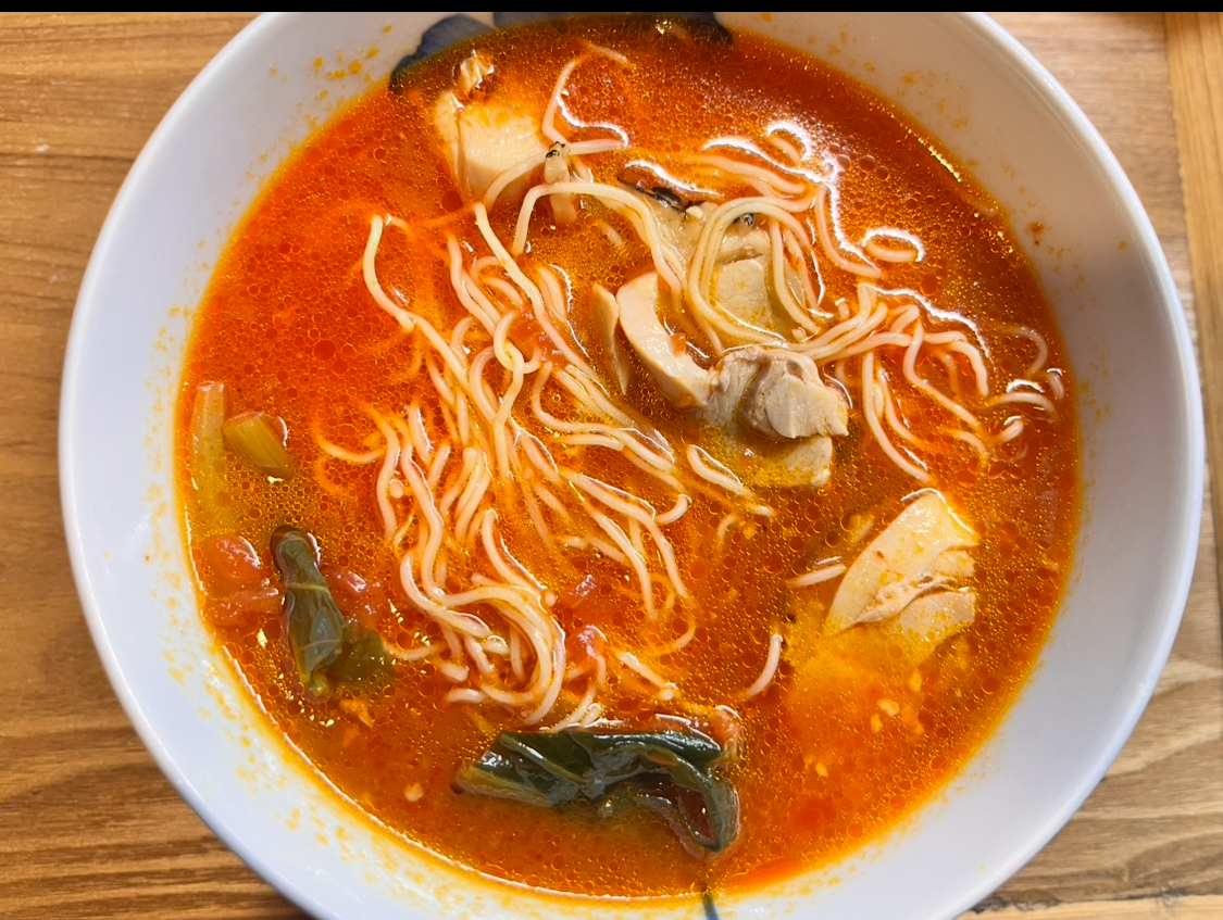 リコピンたっぷり、こだわりのトマトラーメンを食べてました♡ トマトラーメンというとイメージとして...