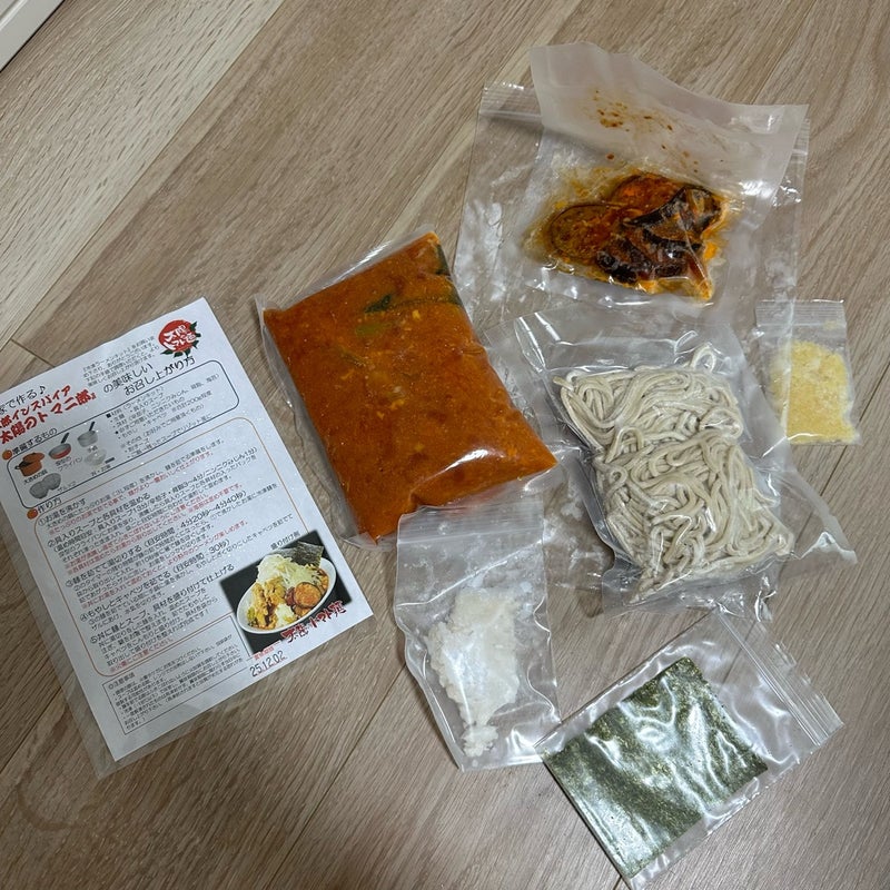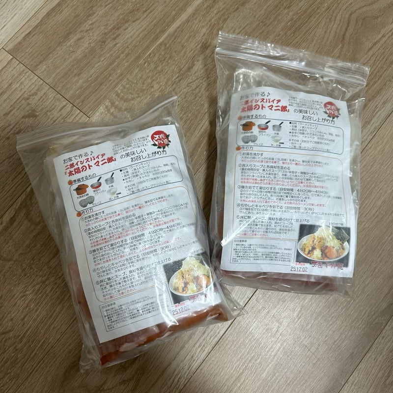 二郎インスパイア系の太陽のトマト麺です。 冷凍で1食分ずつチャック袋にセットされて届きます。 具...