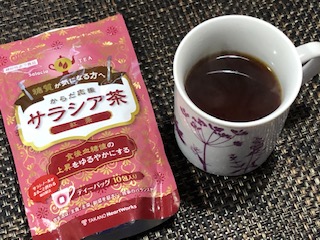 これねぇ、糖の吸収を抑制し血糖値上昇を抑える効果があるとして、インドでは初期の糖尿病治療にも使われてきた植物サラシアのお茶なんですよ