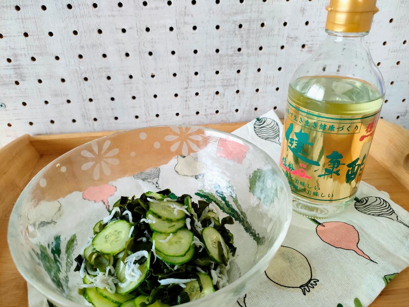 良く作っているのが、きゅうりとわかめの酢の物。普段使っている お酢との違いを感じてみたくて酢の物を作ってみました。