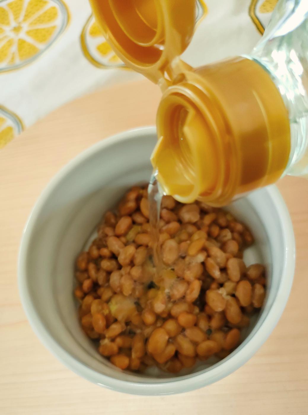 何年も続けているのが納豆に お酢を入れて食べること。こちらも美味しい!! たっぷり入れても酸っぱ過ぎないし、混ぜると納豆がツルっ、サラッと、して食べやすいです。