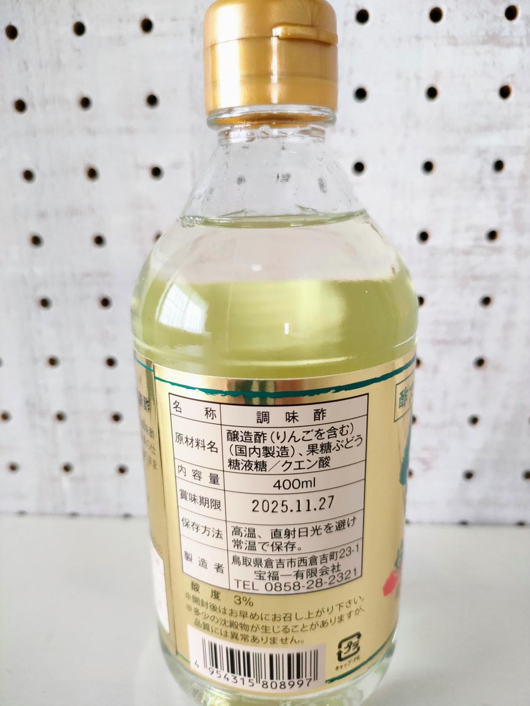 この "健康酢" 箱から取り出したら金色のラベルと澄んだ色がキラキラしていて、とても美しいなというのが第一印象。使う前からワクワク!!