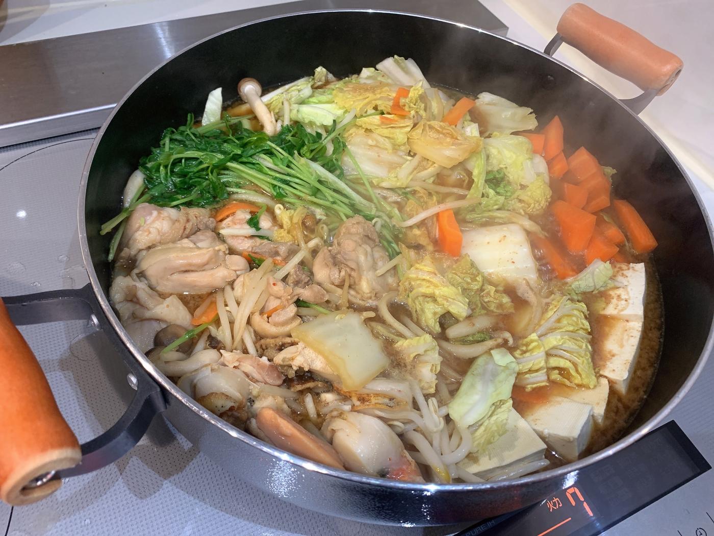 夕飯は「宝福一 のどぐろ味噌鍋スープ」を使って味噌鍋にしました。