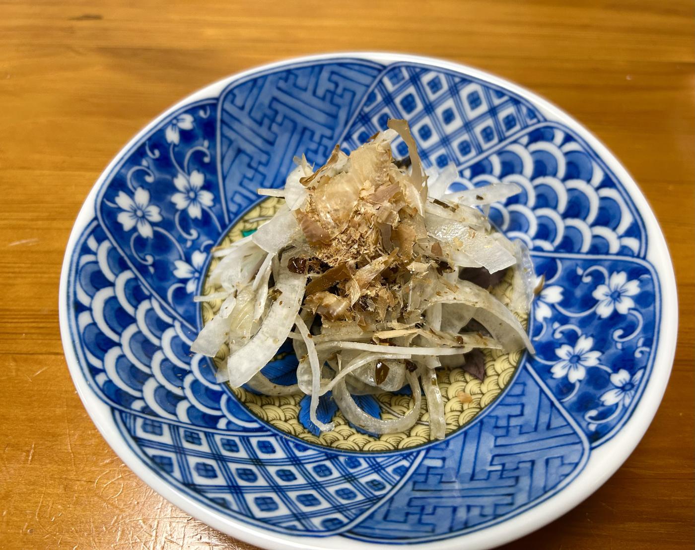 スライスした新玉を軽く洗って、キングクロメを和えただけ。