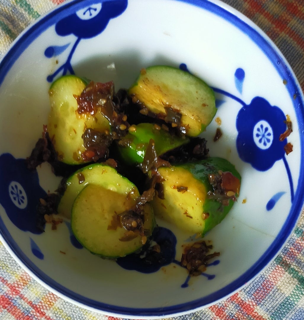 薬味としてや調味料としていろんな料理に入れて使うことができそうなので、キュウリを切ってキング クロメを混ぜてみました。