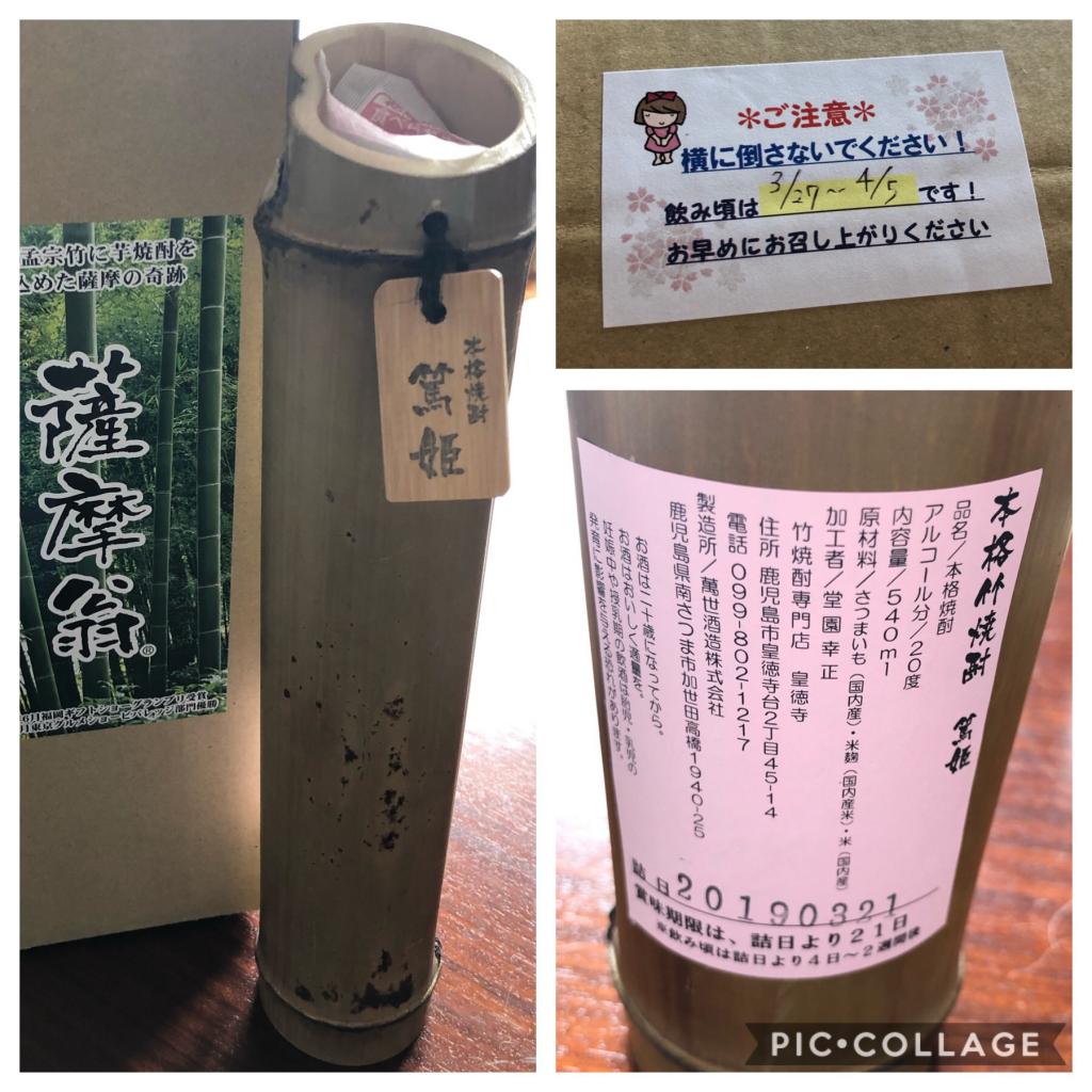 竹焼酎 薩摩翁 篤姫さつまおきな????あつひめ飲んでみました☺???? 立派な竹の中に焼酎が入っています...