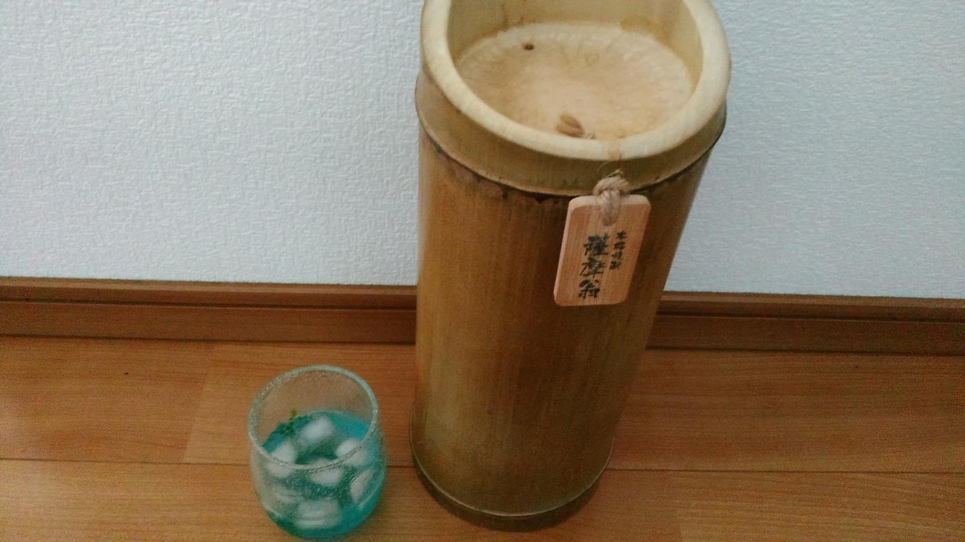 純鹿児島県産の竹焼酎「薩摩翁」です\(^o^)/かぐや姫でも入ってる?ってほどの、大きな竹です。