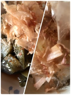 次にナスの煮浸しに花かつおを振りかけて食べました。