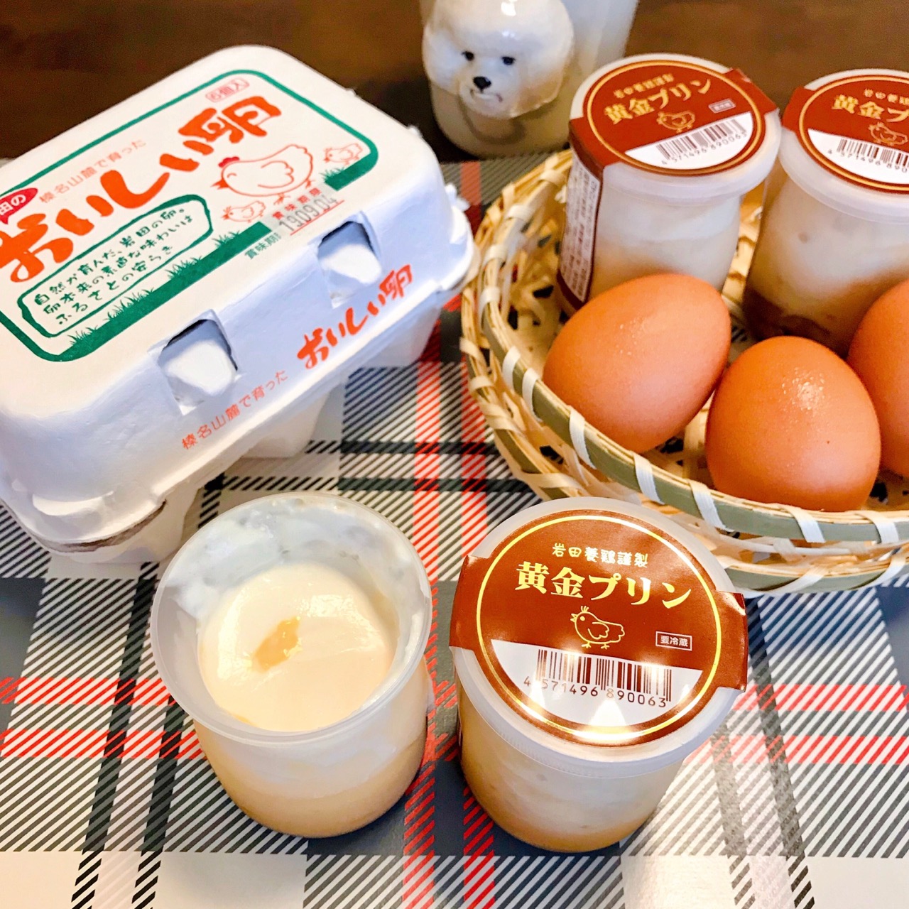 有限会社岩田養鶏場さんの「赤玉大6個入り×2パックと黄金プリン4個」(税込2052円)のモニターでいただいた卵で作っています。