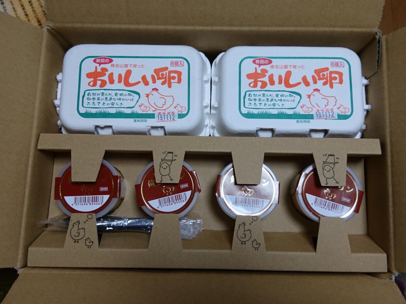 届いたのは大きな赤卵とそのこだわりの卵を使ったプリンのセットです。