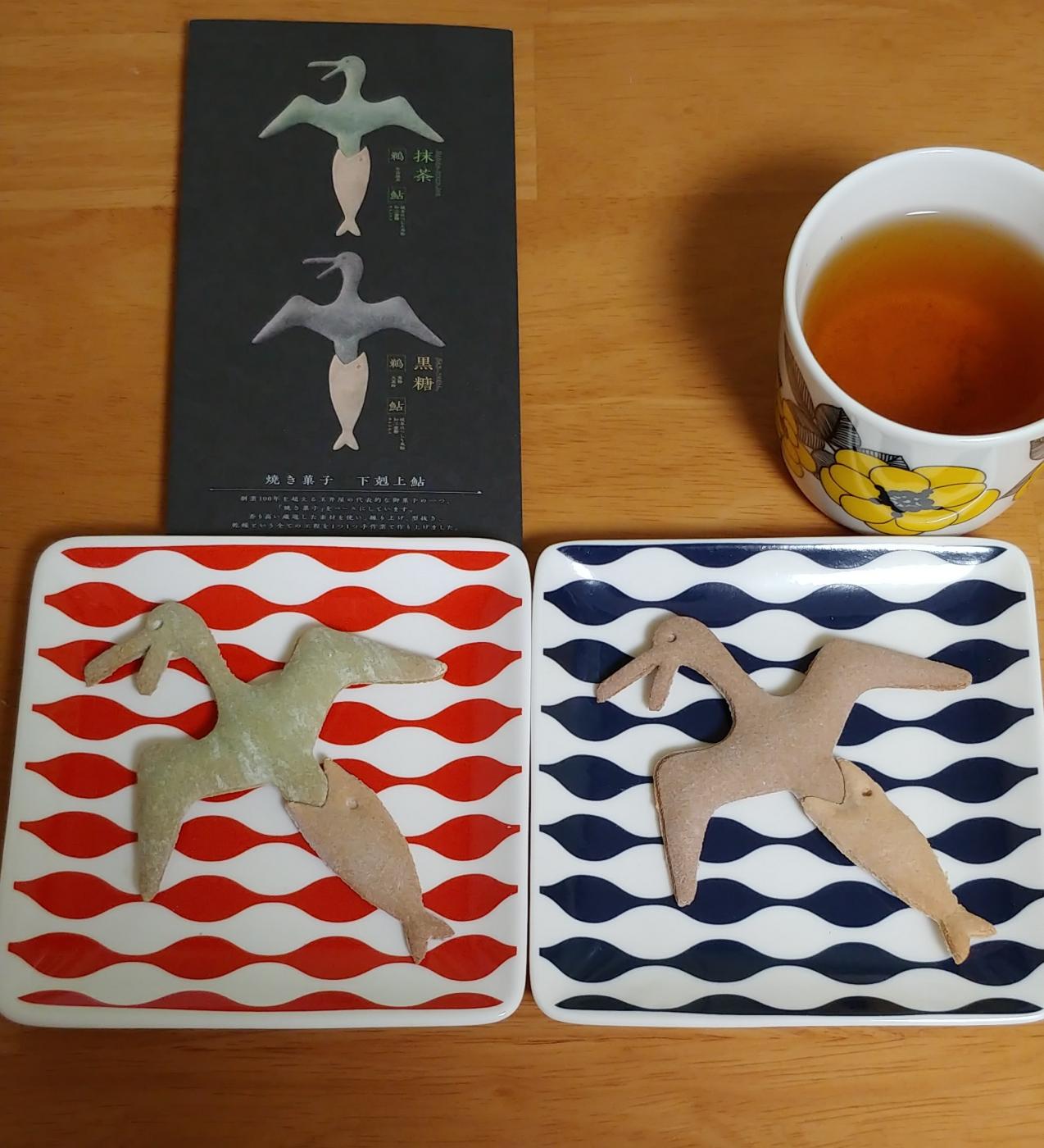 ユーモアたっぷり&どちらも可愛らしいお顔のモチーフに『ふふっ♥』となるお菓子です? ●厳選された小麦粉・卵を混ぜ合わせ、練り上げたあと手作業でそれぞれ鵜と鮎に型抜きし焼き上げられたお菓子、とのこと✨