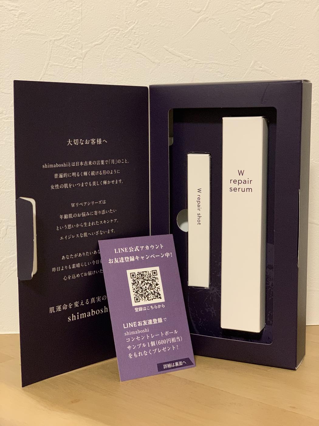 Shimaboshi(シマボシ)さんのWリペアセラムと、Wリペアショットをお試しさせていただきました。