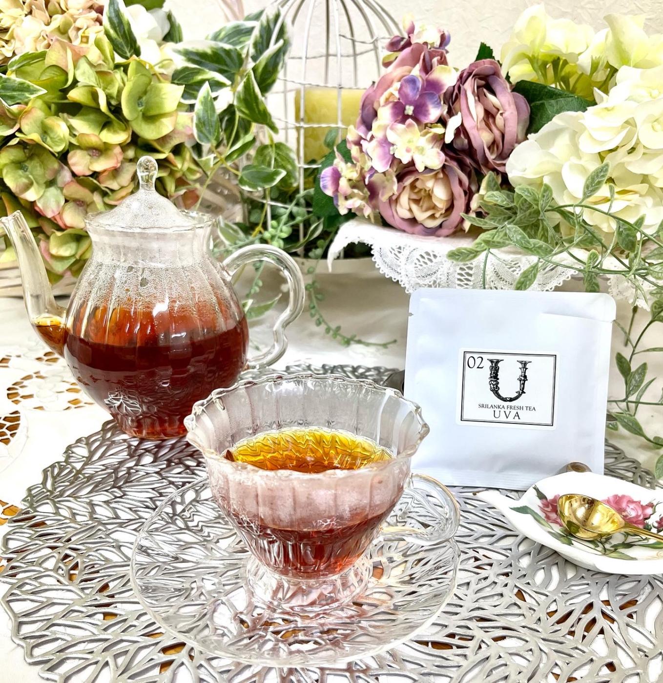ウバは、薔薇に似た香りと強い渋味がありますので、ブラックティーで飲む或いはミルクティーにすると味わいが深くなり美味しいです。