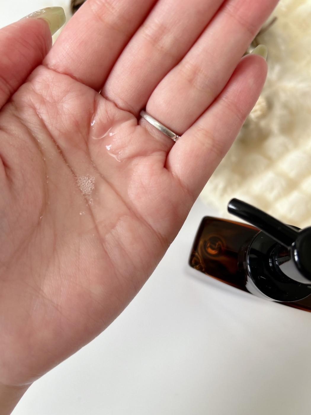 プッシュするとクリアなとろみのあるオイルが出てきます!