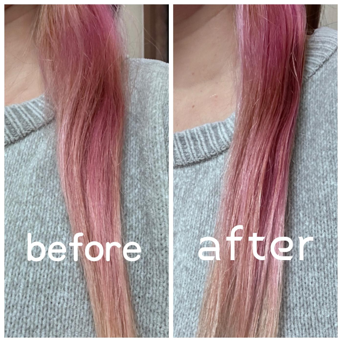コラーゲンのパワーで、髪のキューティクルを補修してくれるので、ツヤだけでなくパサつきもケアしてくれます。バシバシのボサボサヘアも、サラサラになりました。