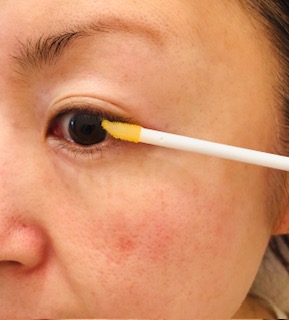 まつ毛にアイライナーを塗るようにまつ毛の生え際と周辺に塗ります。
