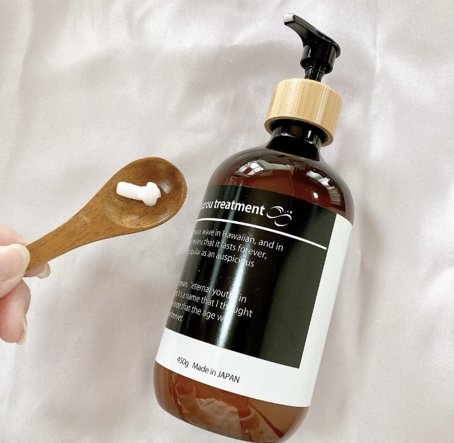 トリートメントはこっくりしたテクスチャーで髪1本1本に密着する感じで、なめらかに伸びて、髪を流してる間から髪がトゥルントゥルン