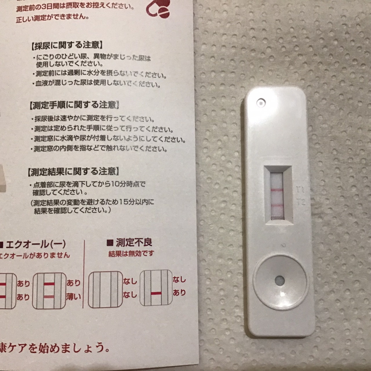 判定結果は、うっすらと2本目の線が。尿の中にエクオールがないようです。