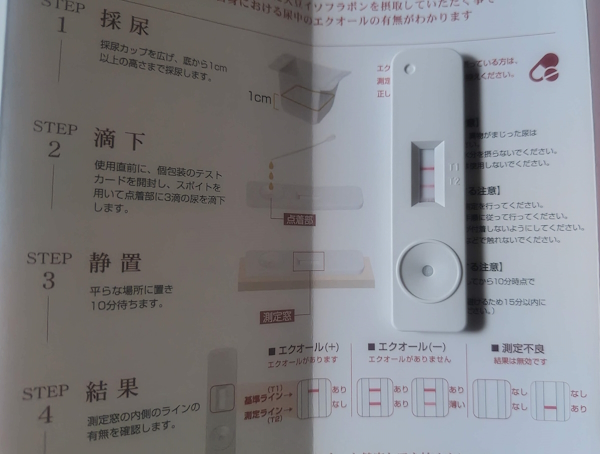 結果は、うっすら2本目の線が出ており、エクオールの産出なしとの結果。