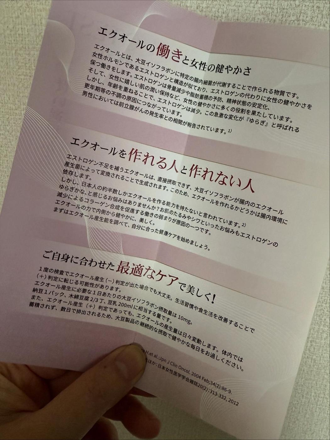 そもそもエクオールとはなんぞやって話しなんですけど、大豆イソフラボンの一種であるダイゼインが、腸内細菌の働きによって代謝されて作られる成分だそうで、女性ホルモン「エストロゲン」と似た働きをするため、更年期症状の緩和や骨・肌の健康維持など、女性の健康と美容をサポートしてくれる嬉しい存在だそうです。