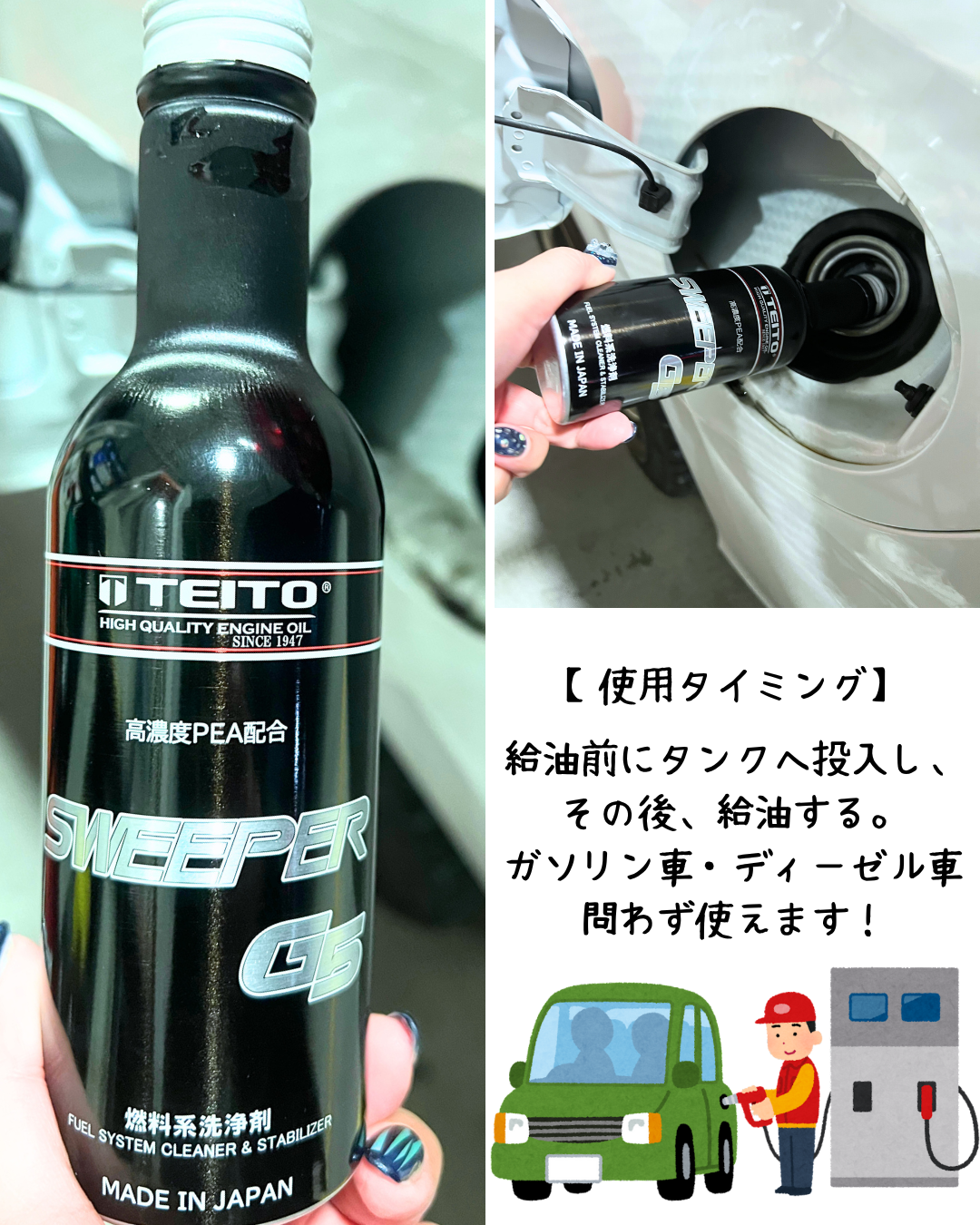 使い方は簡単💡給油時にタンクに入れるだけ😉✨