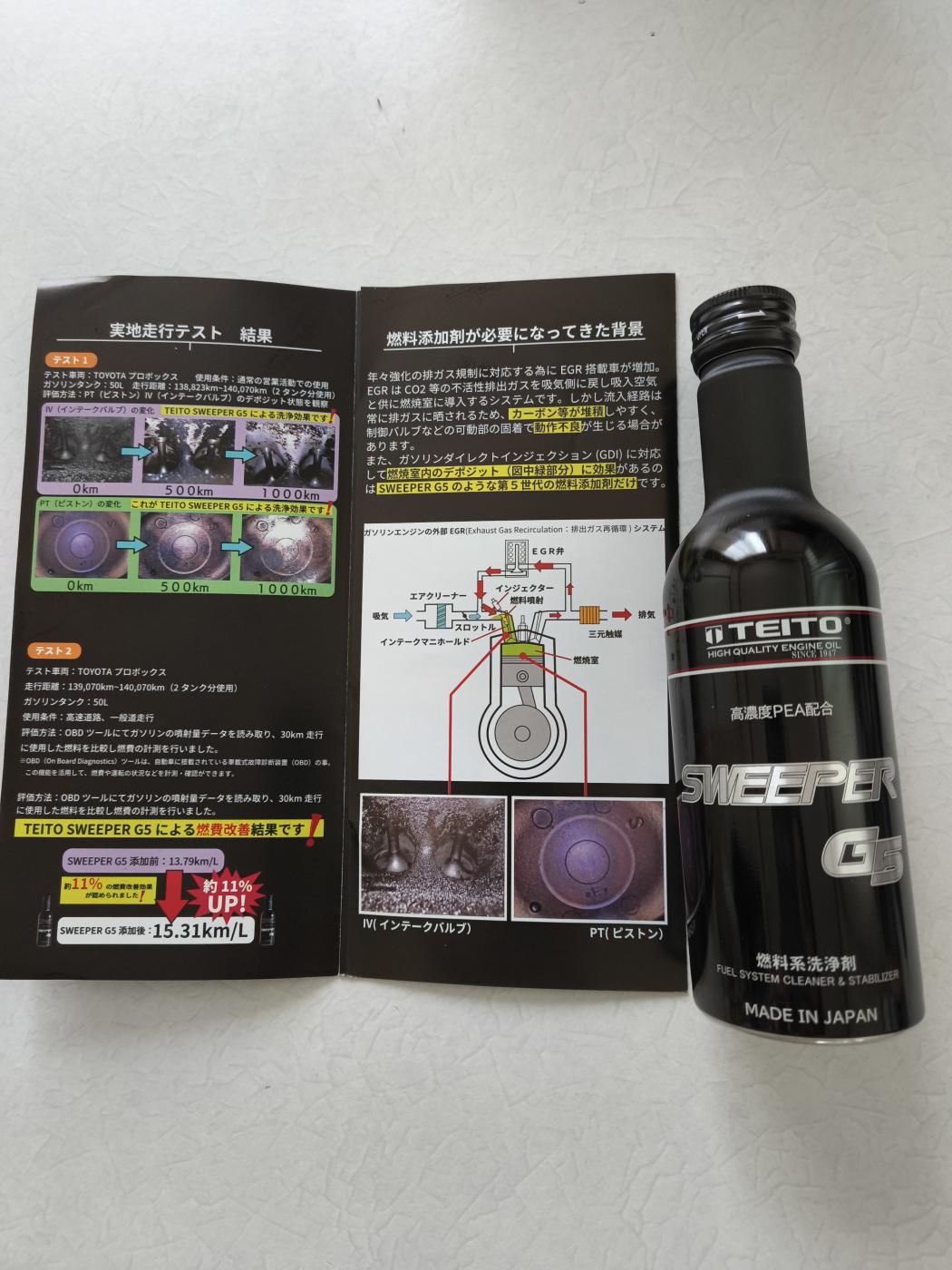 こちらの商品はその汚れを強力に溶かして燃料室で一緒に燃やされることにより処理でき、エンジン内部をクリーンにすることで燃費改善にも効果があるのがすごいと思いました。
