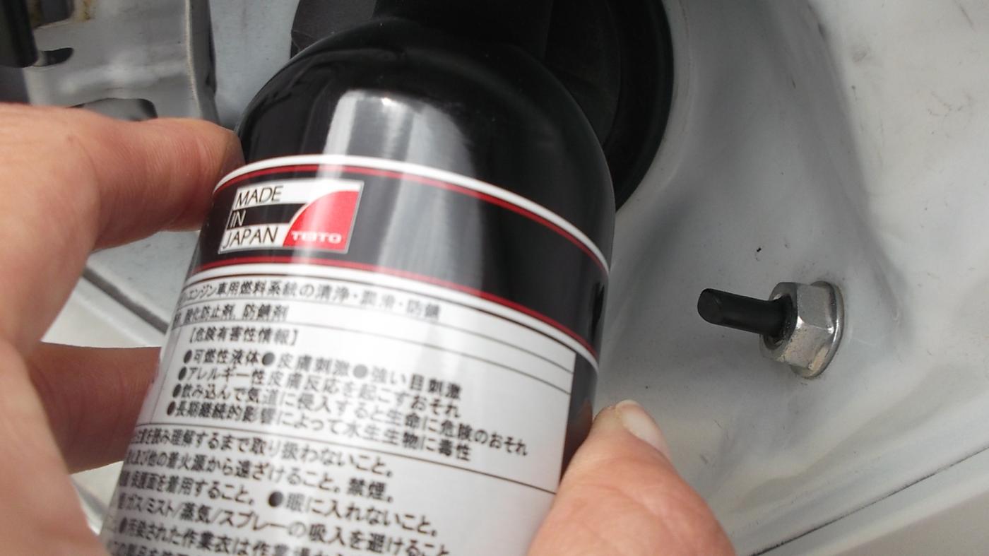 SWEEPER G5を一緒に投入するだけ。旦那様にしてもらったのだけど、ガソリンを給油する前に、ガソリンの給油口に入れるだけ。手を汚すこともなし。燃料系洗浄剤 SWEEPER G5に配合される高濃度PEAがエンジン内部の汚れを強力に溶かし、溶かした汚れを燃料室で燃やし、取り除いてくれるとの事。