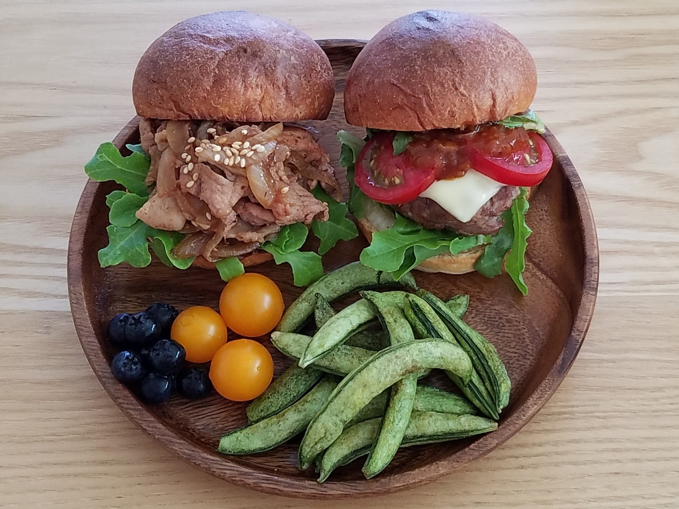 冷凍のまま包丁で切って、トースターの中に置いてバーガーにする前に少し焼きました。