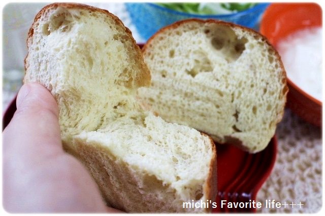 割ってみると、ふんわりしてるけどギュッと目が詰まってて中身がギッシリした感じ。