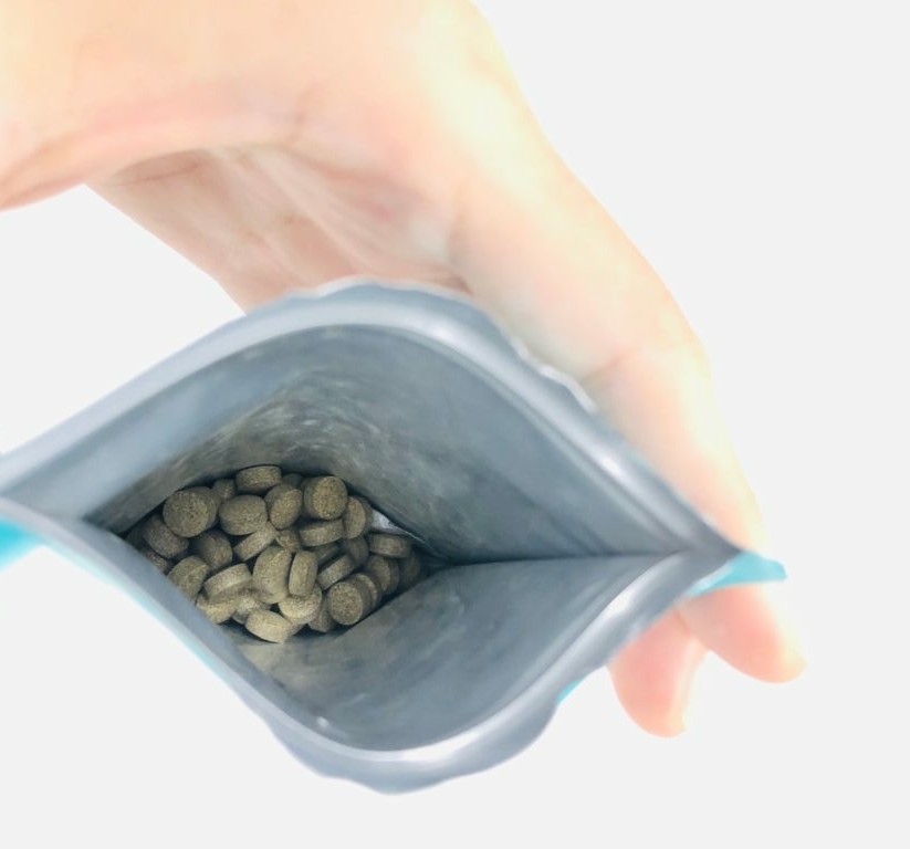チャックがついてるので持ち運びやすいです。1日4粒飲んでもらってます。錠剤は飲みやすい大きさで、水でいっきに飲んでしまえばニオイもそんなに気になりません。スーパーフードであるマカが配合されていて、体の内側から元気になれます!