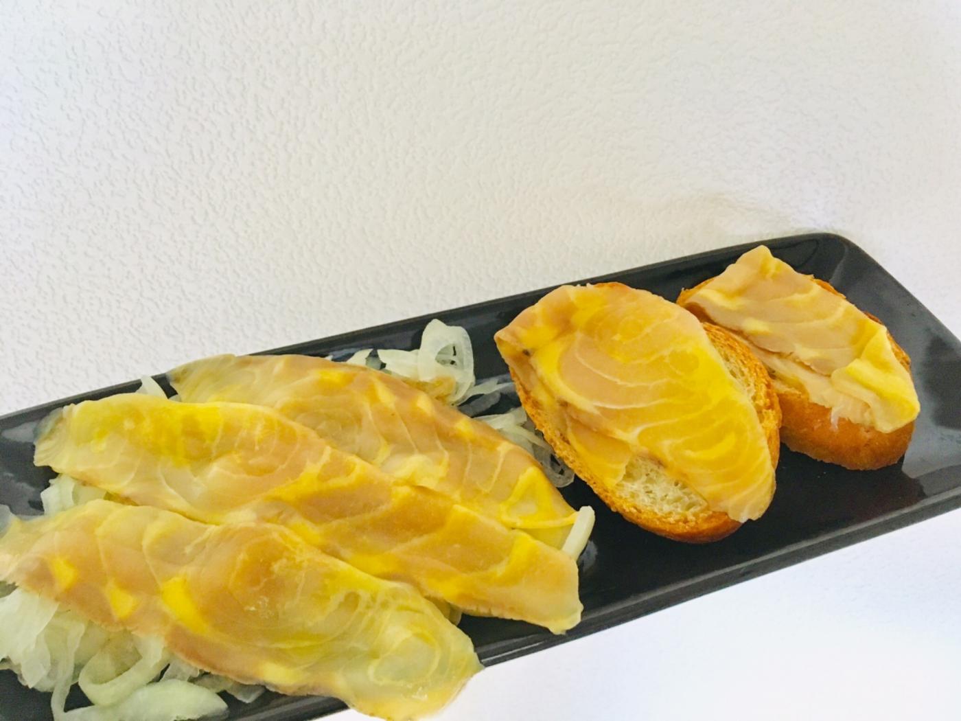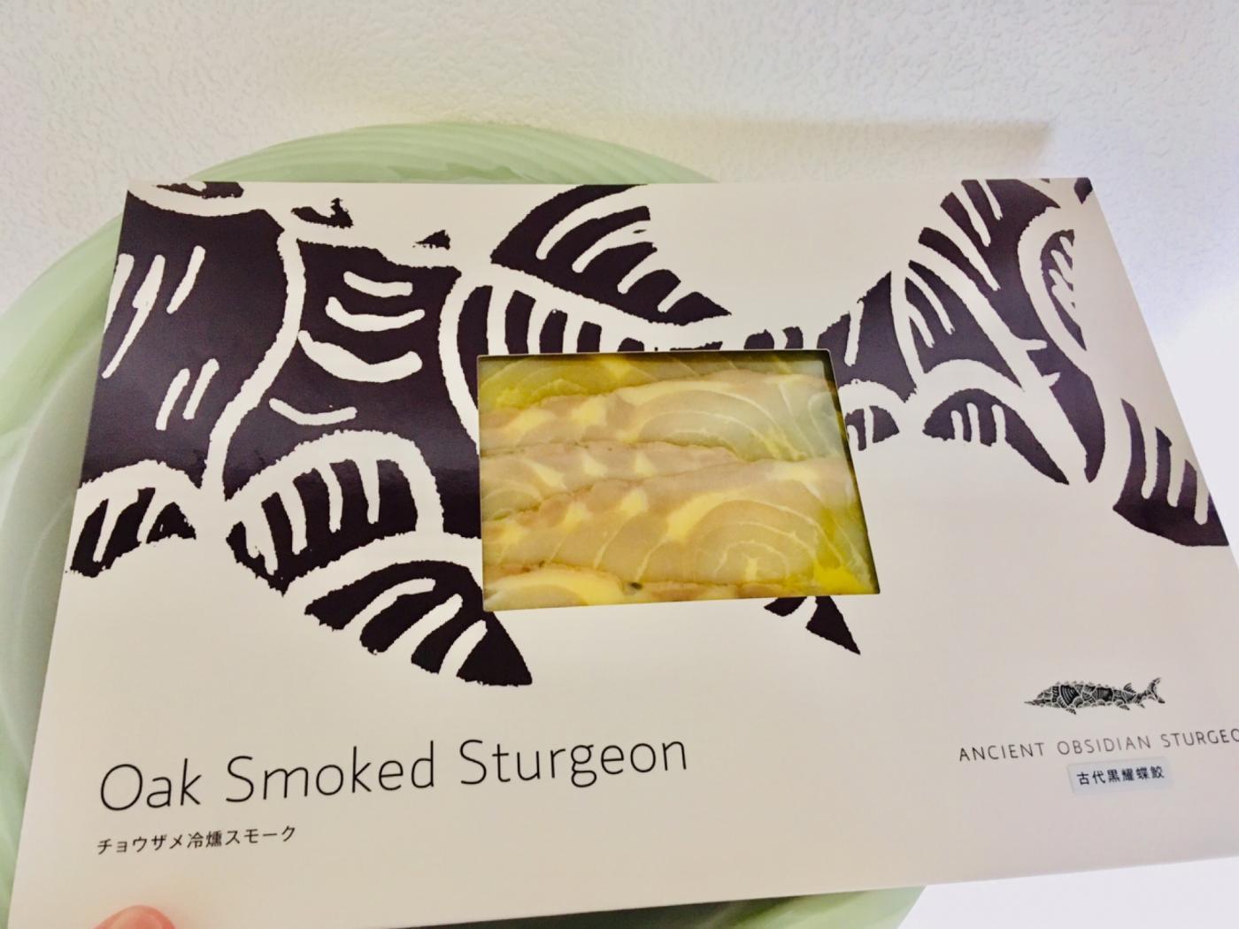 薄くスライスされた、5枚ほどのチョウザメの冷燻スモークは、冷蔵宅配で届いた。
