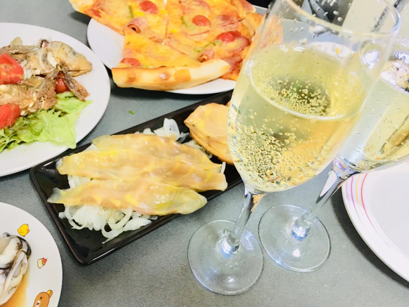 仕方がないから、妻が買い置きしていた白のスパークリングを用意してもらった。