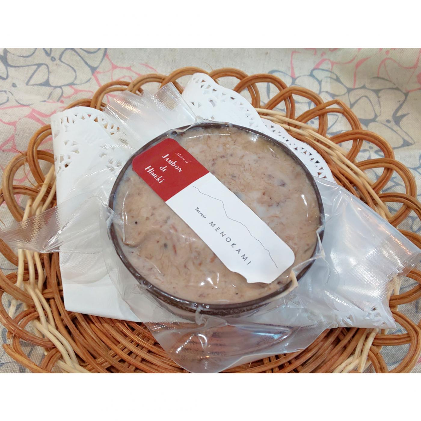 軽く燻製した豚肉をワインとラードで丁寧に煮込み、柔らかく仕立てたオリジナルの豚肉ペーストです。
