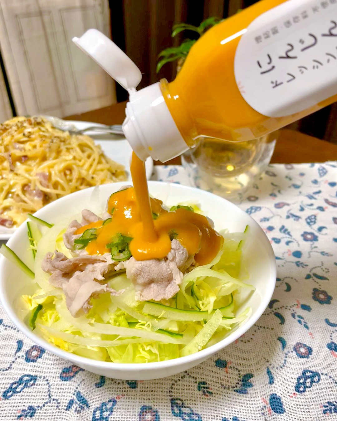 私はトマトが苦手なのでサラダに暖色系の色が入ることがあまりないのですが、ドレッシングはきれいな色を足せるのは嬉しい!