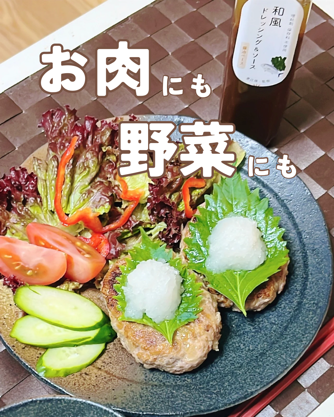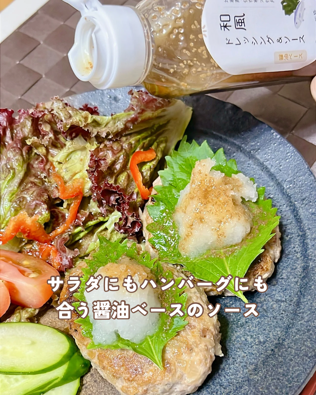 ハンバーグはもちろん、野菜とも相性が良く、手軽に和風味を楽しめます。