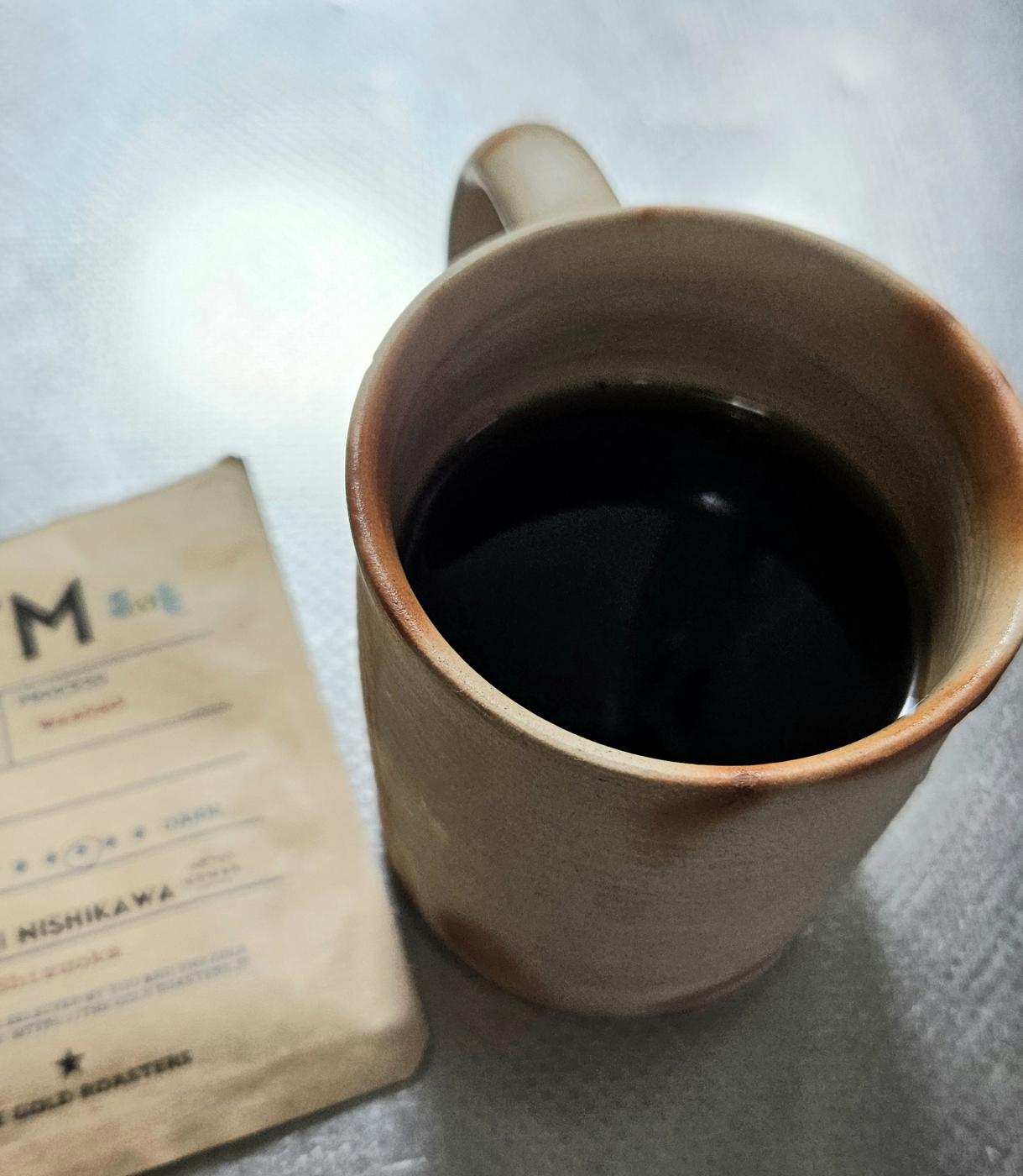 しっかり漆黒、飲んでみると苦みがしっかりしていて酸味は少なくて飲みやすいです。