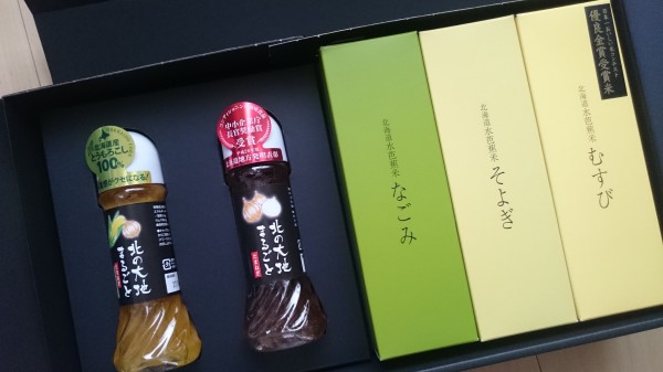 今回、北海道のお米とドレッシングのセットが当選しました!