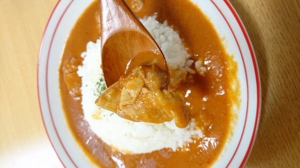 トマトのに比べると甘めで、辛みも少なめだったかな。いつも食べているカレーとは違い、深い味わいで旨みのとけこんだ、洋風スープのようでした。