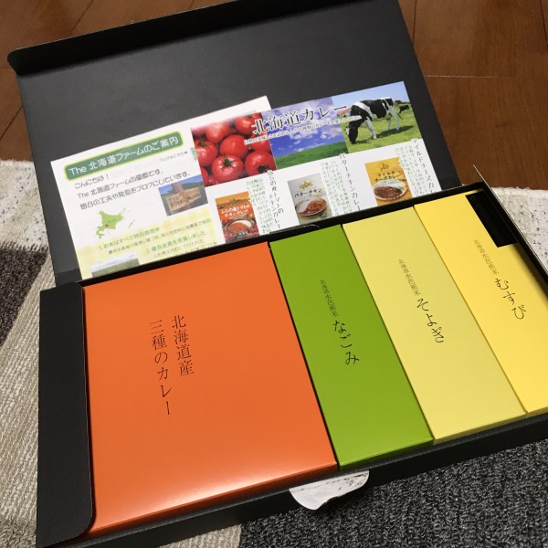 北海道の食材にこだわった3種類のカレーと北海道の特別栽培米、水芭蕉米のセットでこの1箱で美味しい北...