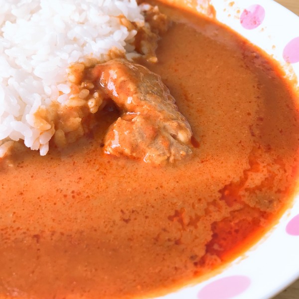 トマトの酸味と甘みとバターのまろやかさがカレーのスパイスの辛味を抑えてくれて子供でも食べれる食べやすいカレーでした。