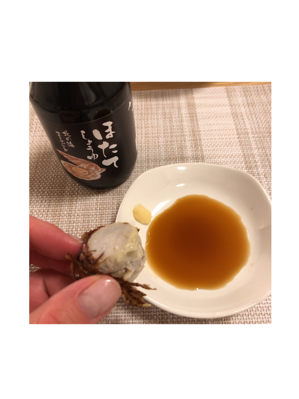 ほたて醤油は、ちょうどきぬかつぎを蒸したのでしょうが醤油でいただきました!ほたての美味しい旨味が感じられるまろやかなお醤油でした!