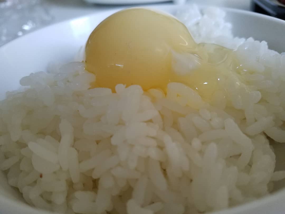 卵は薄黄緑っぽい色のもありました。写真で見てわかる通り、横から見ると黄身の盛り上がりがすごい!!お米は北海道米の「なごみ」で、ほたて醤油をかけて、卵かけご飯をいただきました。