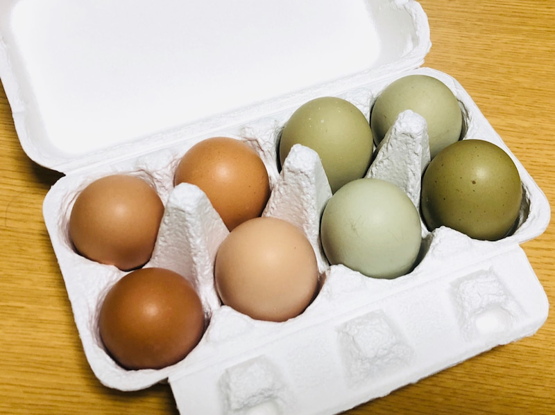 卵と言えば白かピンク色が多い中、少し変わった色ですよね。