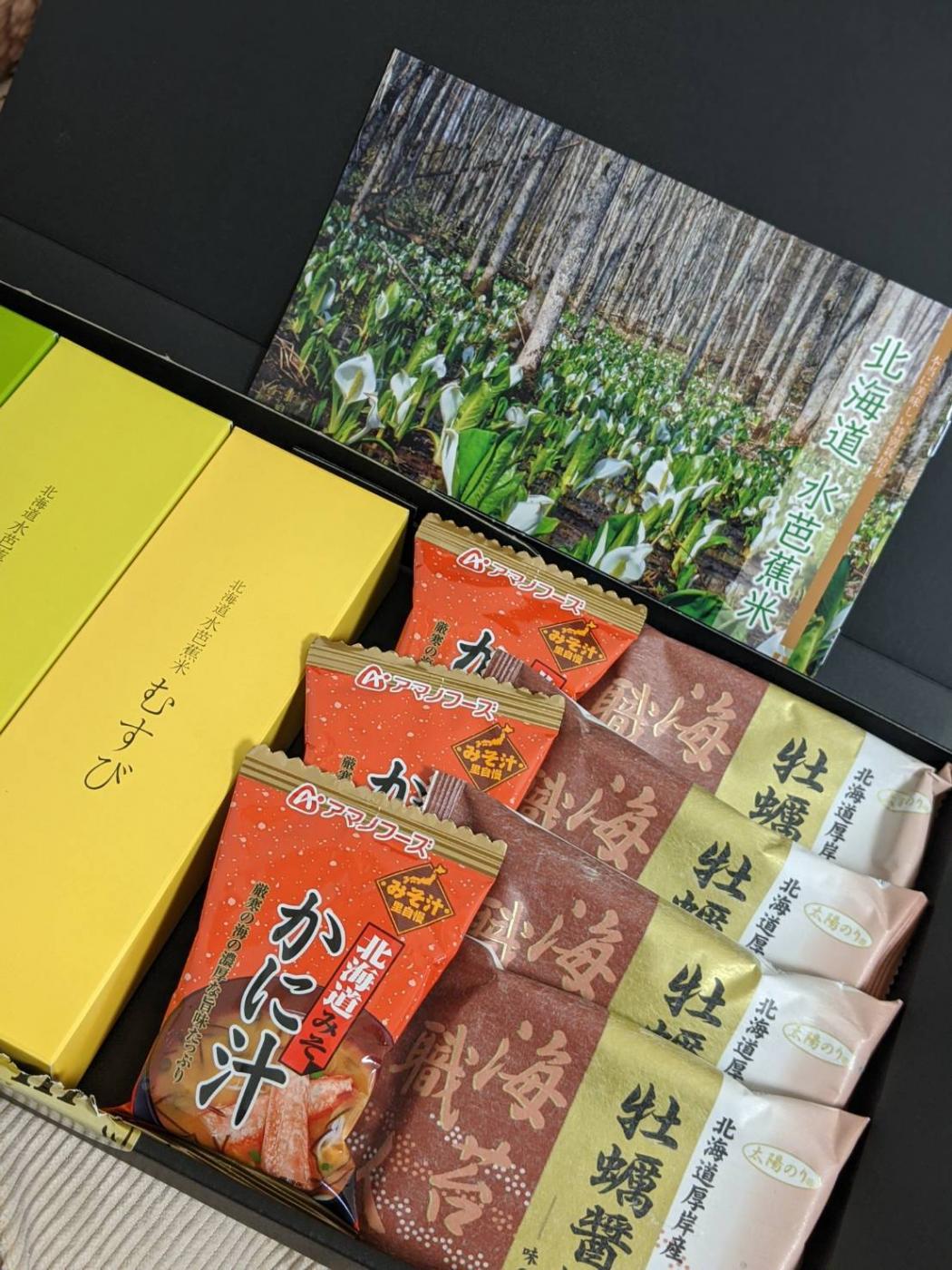 The北海道ファームさんより、かに汁、お米、牡蠣海苔セットを頂きました✨ しっかりとした高級感のあ...