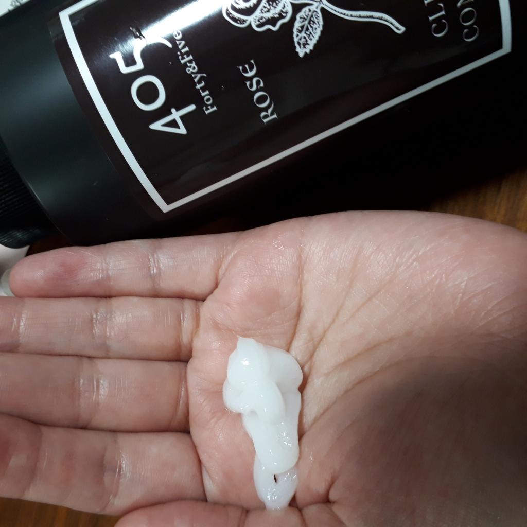 実際に使用した感想ですが、私は髪の毛が長い&量が多いので6プッシュ使用。まず掌にクリームを出した瞬間浴室にローズのいい香りにが広がりとても癒されます。