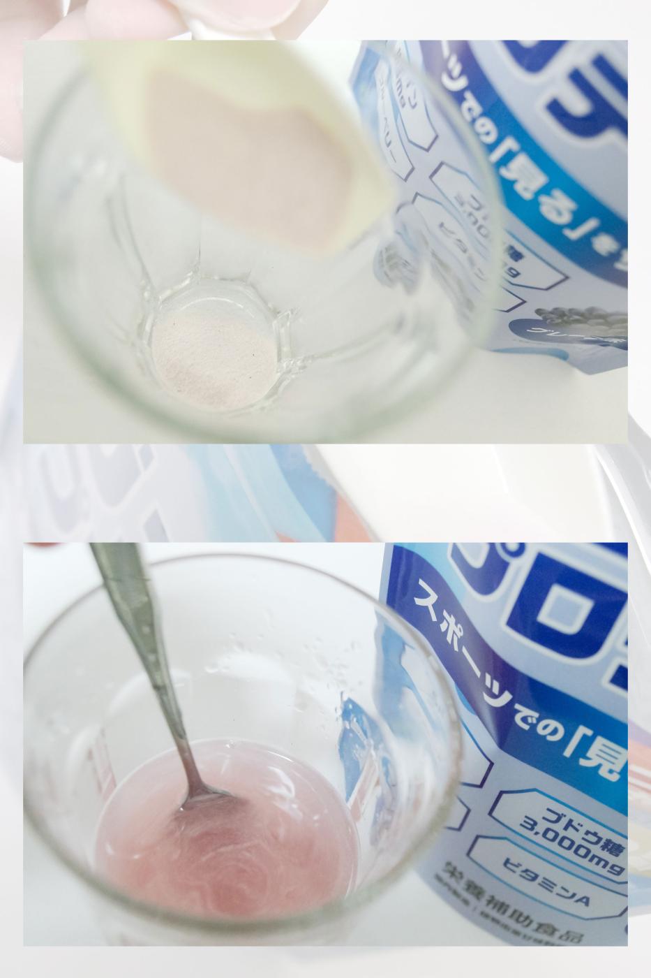 付属のスプーンで粉を入れて、そこにお水を入れて混ぜるだけ