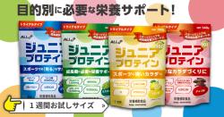 このジュニアプロテインにはほかにもいくつかシリーズがあるので、子どもの悩みに合わせて選ぶこともできそう。すっきりとした飲み心地なので、運動の後にもよさそうです。最近は、スイミングも始めたので、泳いだ後の水分補給として飲むのもいいのかな☆と思っています。