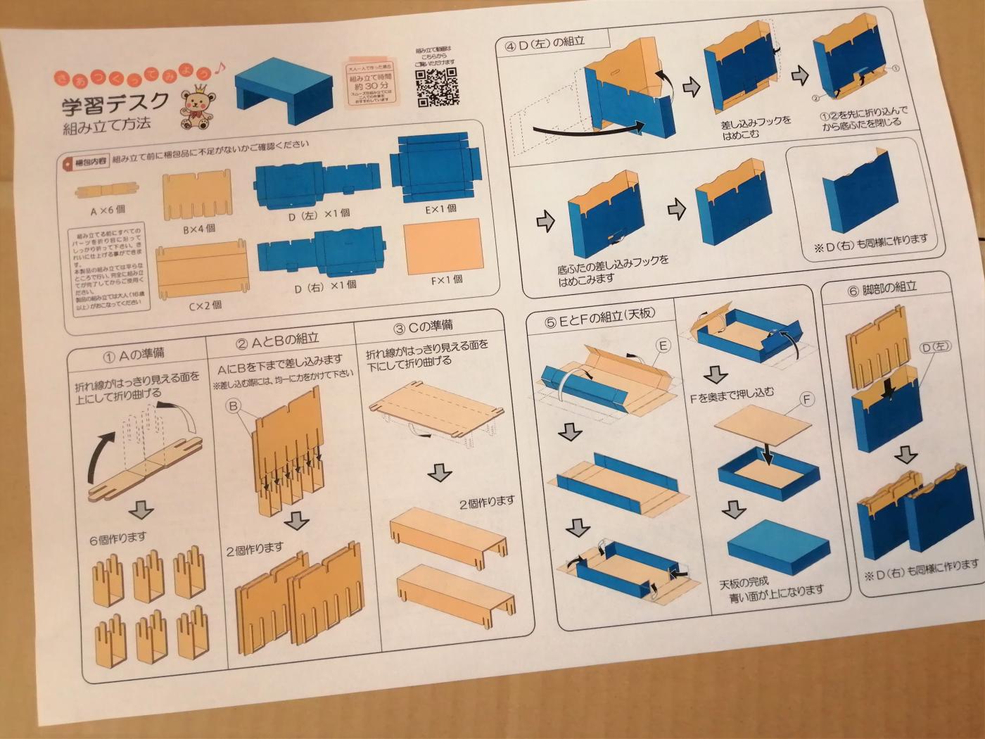 とっても大きな段ボール箱で届いたのが、学習づくえです。