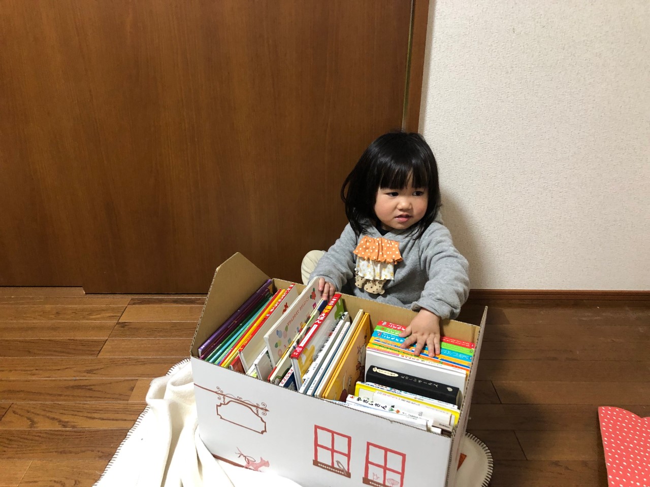 パパはブロックを入れる?と言って、ママはぬいぐるみ入れようかな?と提案すると即決で絵本にするそうです。絵本大好きな娘はルンルンでお引越し。