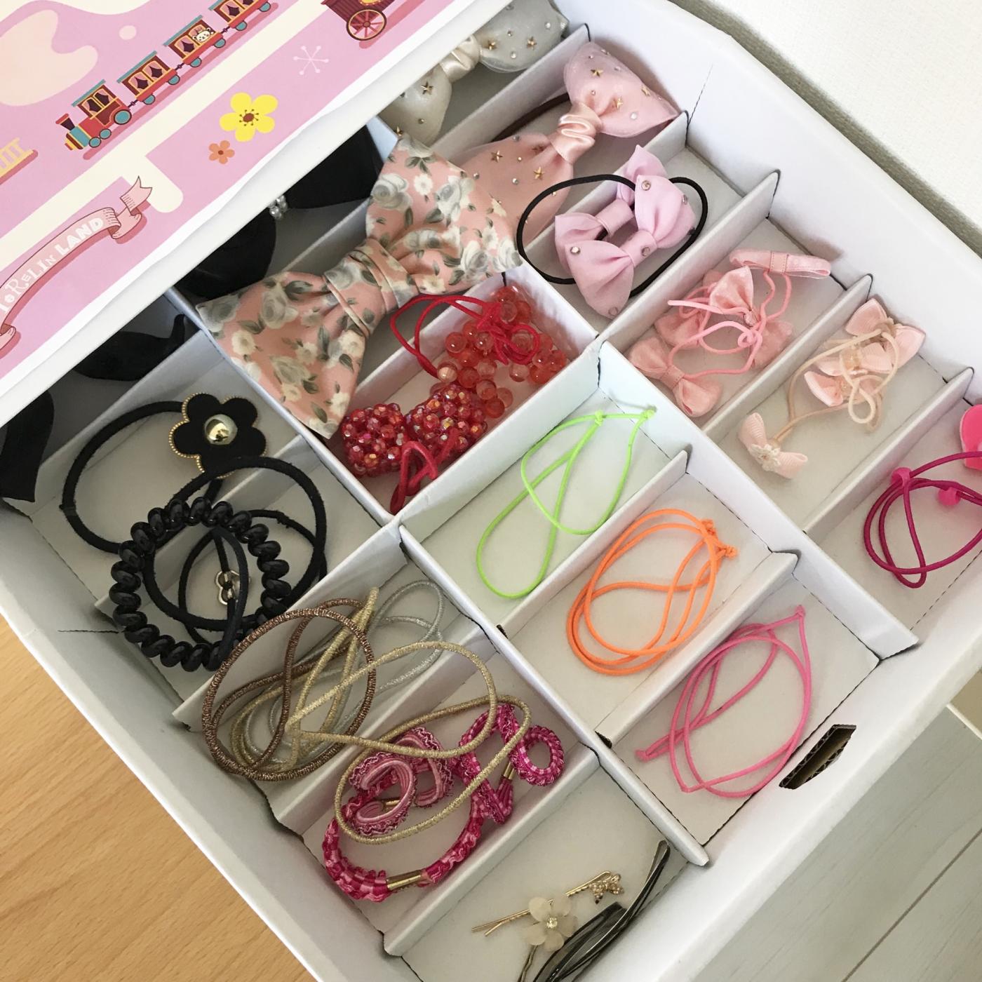 作りもしっかりしてて、何入れよう?!と悩んでたんですが娘は、毎朝髪をしばって登園するんですが、ヘアーゴムをしまってるところが私と一緒なので探すのに、片方がないとかいつも時間がかかってしまっていたので引き出し1段目にヘアーゴムを入れてみました
